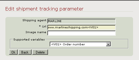 - Enter the applicable URL. This should include the address to your shipment agent and the referencing variable to your goods (see list of supported variables at the bottom of the window).